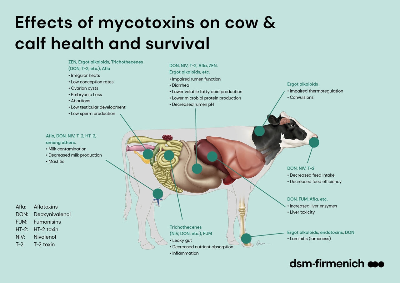Abbildung 1. Auswirkungen von Mykotoxinen auf die Gesundheit von Kühen & Kälbern.