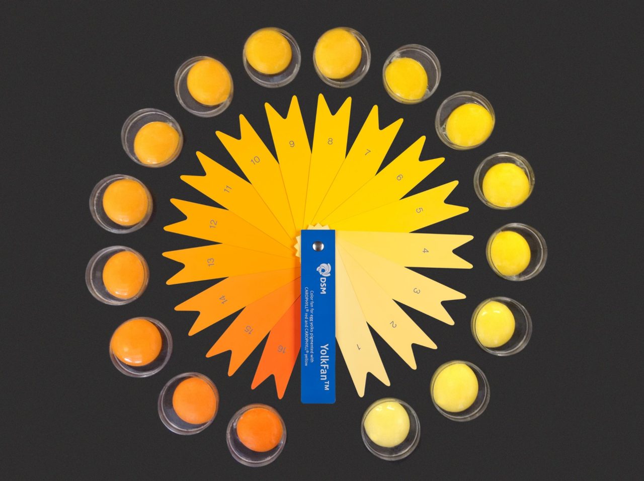 dsm-firmenich hat die Vorlieben der Verbraucher in vielen Teilen der Welt untersucht und festgestellt, dass die Verbraucher in den meisten Ländern eine Eigelbfarbe mit einem dsm-firmenich YolkFanTM Wert von 12 oder mehr bevorzugen.