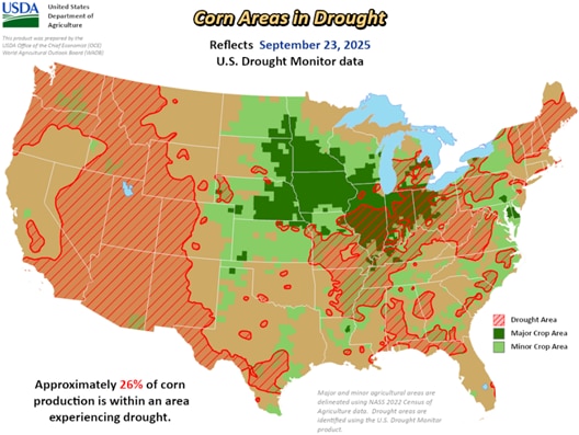 Figure 5. USDA Corn Areas in Drought – U.S. Drought Monitor September 23, 2025.3