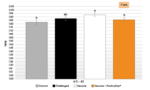 Although the clinical form is severe, the sub-clinical form often goes unnoticed, silently affecting bird performance and profitability. Sub-clinical infections reduce performance, often resulting in an estimated economic loss of $0.05 to $0.063 per bird, making it a silent but costly burden for producers. Beyond mortality, necrotic enteritis significantly impairs nutrient absorption, growth rates, feed conversion, and overall animal welfare.