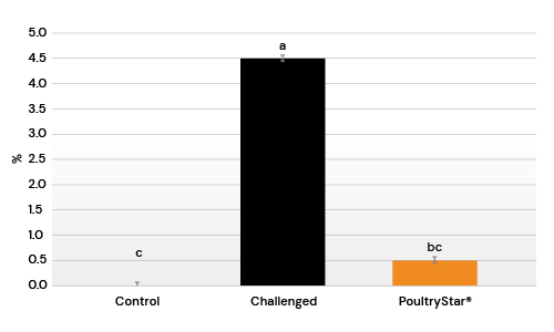 Necrotic enteritis is caused by the overgrowth of Clostridium perfringens, a spore-forming Gram-positive bacterium, commonly found as part of the normal gut microbiota. These spores are highly resistant to environmental stressors like heat, disinfectants, and UV light, allowing the bacteria to persist in typical poultry environments.