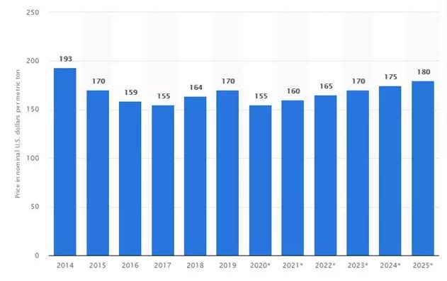 Corn, for example, is a basic ingredient in swine diets. The average international price is around USD 160 per ton, and projected to rise in USD 5 increments to an incredible USD 180 per ton in 2025.