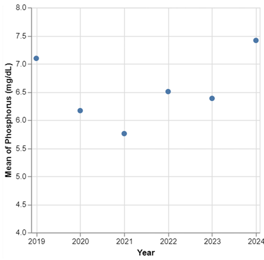 A análise do banco de dados global de VeraxTM mostra uma variação significativa na concentração plasmática de fósforo, de ano em ano (Figura 1). Essa variação está associada ao nível de fósforo subjacente nos principais ingredientes da dieta, como milho, trigo ou farinha de soja. A menos que essa variação seja monitorada, implementando os correspondentes ajustes na dieta, pode ocorrer no sangue uma alteração na proporção de fósforo e cálcio plasmáticos, levando a um aumento da suscetibilidade das aves aos distúrbios esqueléticos. O uso do aprendizado de máquina supervisionado para analisar o banco de dados global de VeraxTM também revelou uma variabilidade semelhante na concentração de cálcio metabolicamente disponível no sangue, parcialmente explicada pela variabilidade no pH sanguíneo. Isso, por sua vez, se relaciona com a saúde do trato respiratório, a função renal e o equilíbrio eletrolítico da dieta. Todas essas associações são frequentemente contraintuitivas e indicam o poder de Big Data quando combinada com analítica avançada.