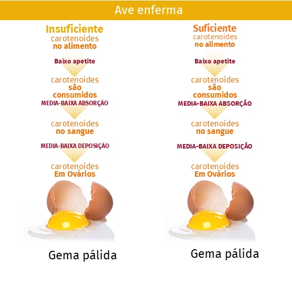 Os níveis de carotenoides variam nos ingredientes das rações para outra e, a menos que as dietas de aves e peixes sejam fornecidas com suplementos, o resultado será uma variação na aparência dos produtos alimentícios.