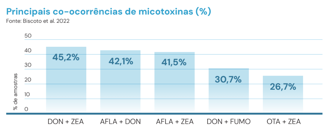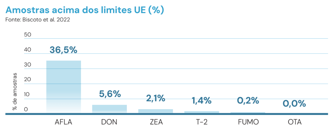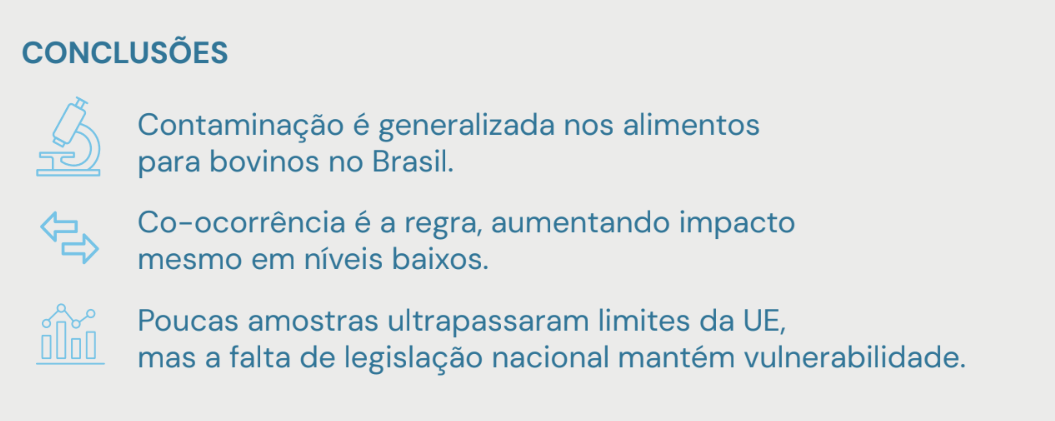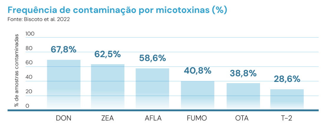 Investigar a presença das principais micotoxinas (AFLA, DON, FUMO, OTA, T-2 e ZEA) em rações e ingredientes para bovinos no Brasil (2017–2021), avaliando frequência e co-ocorrência para subsidiar estratégias de monitoramento e controle.